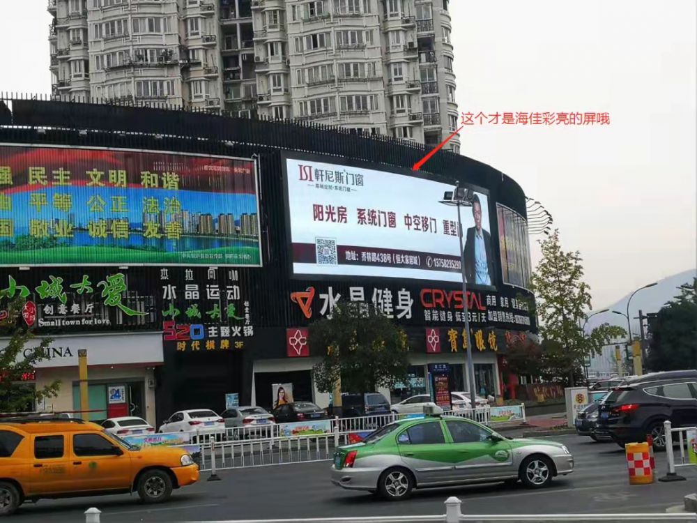 此类广告大屏屏体面积大、可视距离远、安装高度高、视角要求高,采用海佳彩亮共阳分压节能方案户外D4、D5、D6,造价相对低,更符合商家预算,能够实现硬核节能,同时无损亮度,具备160°超宽视角,画面清晰颜色均匀一致。